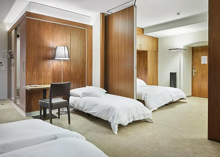 The grand B & B Hotel Basel is a 3-star venue placed about a 5-minute drive from BIZ tower Bank. It provides Wi-Fi in public areas.